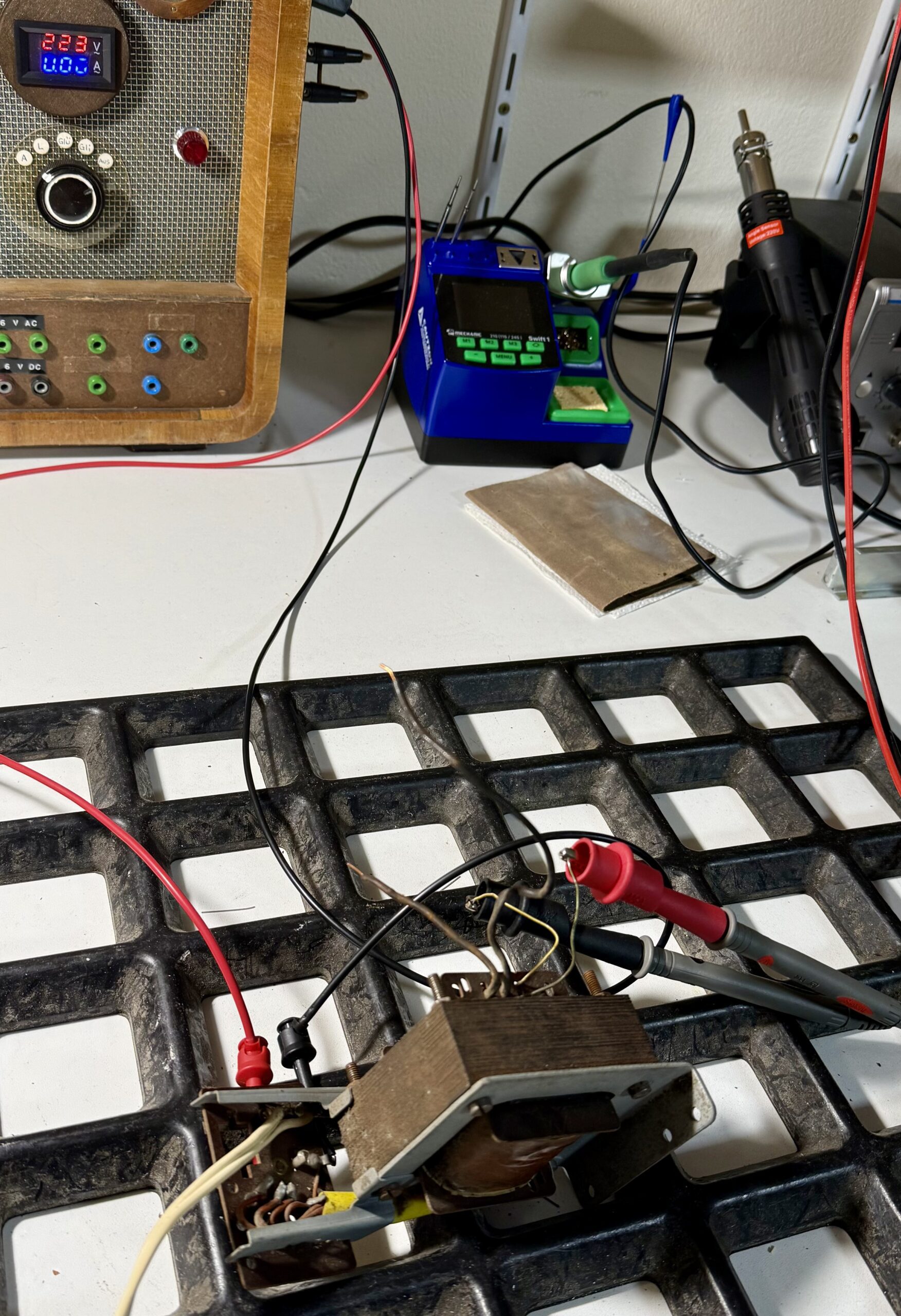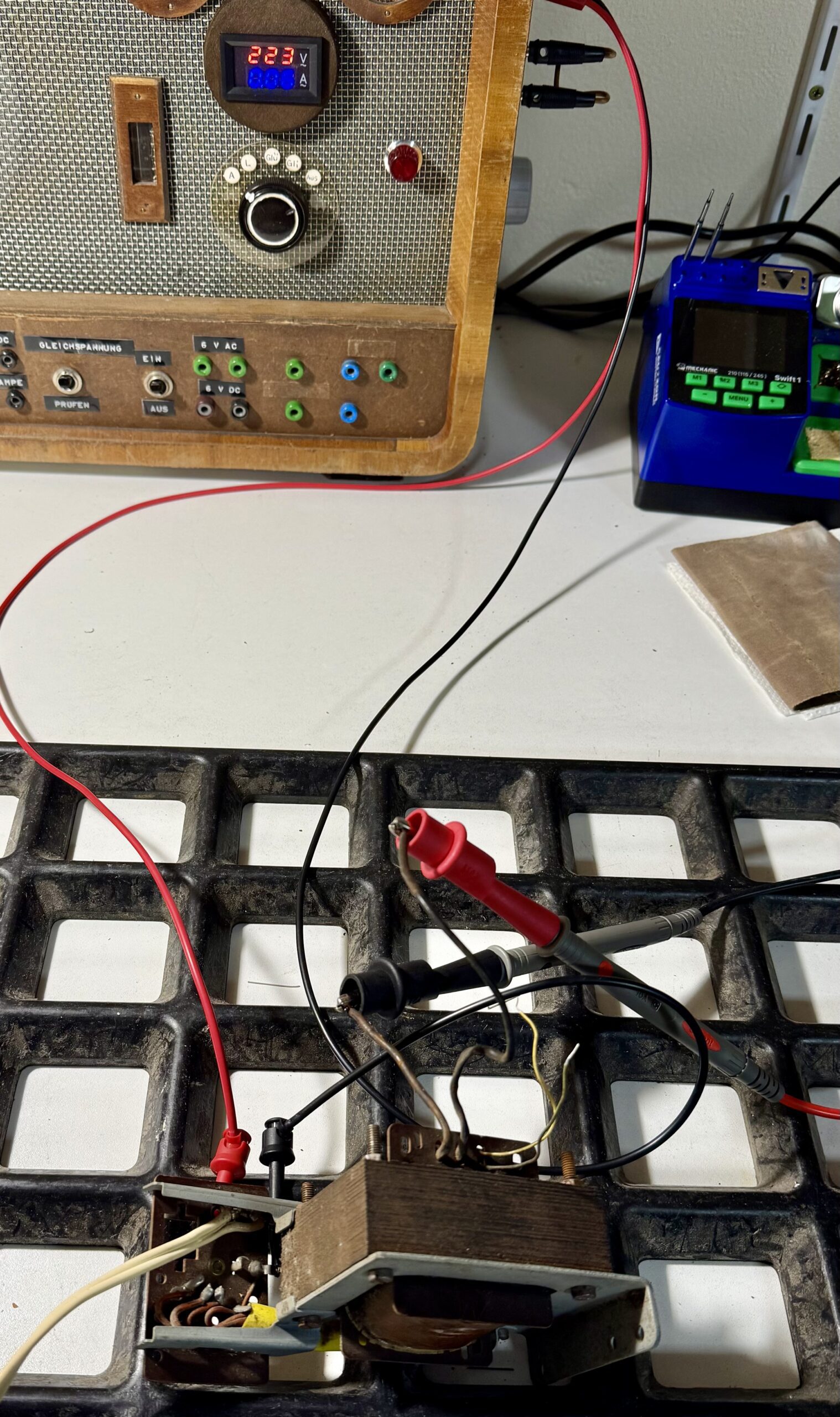 Der Ersatz liefert die nötige Heizspannung (6,3 V), hat allerdings für die Anodenspannung mit 268 V etwas zu viel Dampf. Der Umbau der Spannungsversorgung ist damit dennoch möglich.