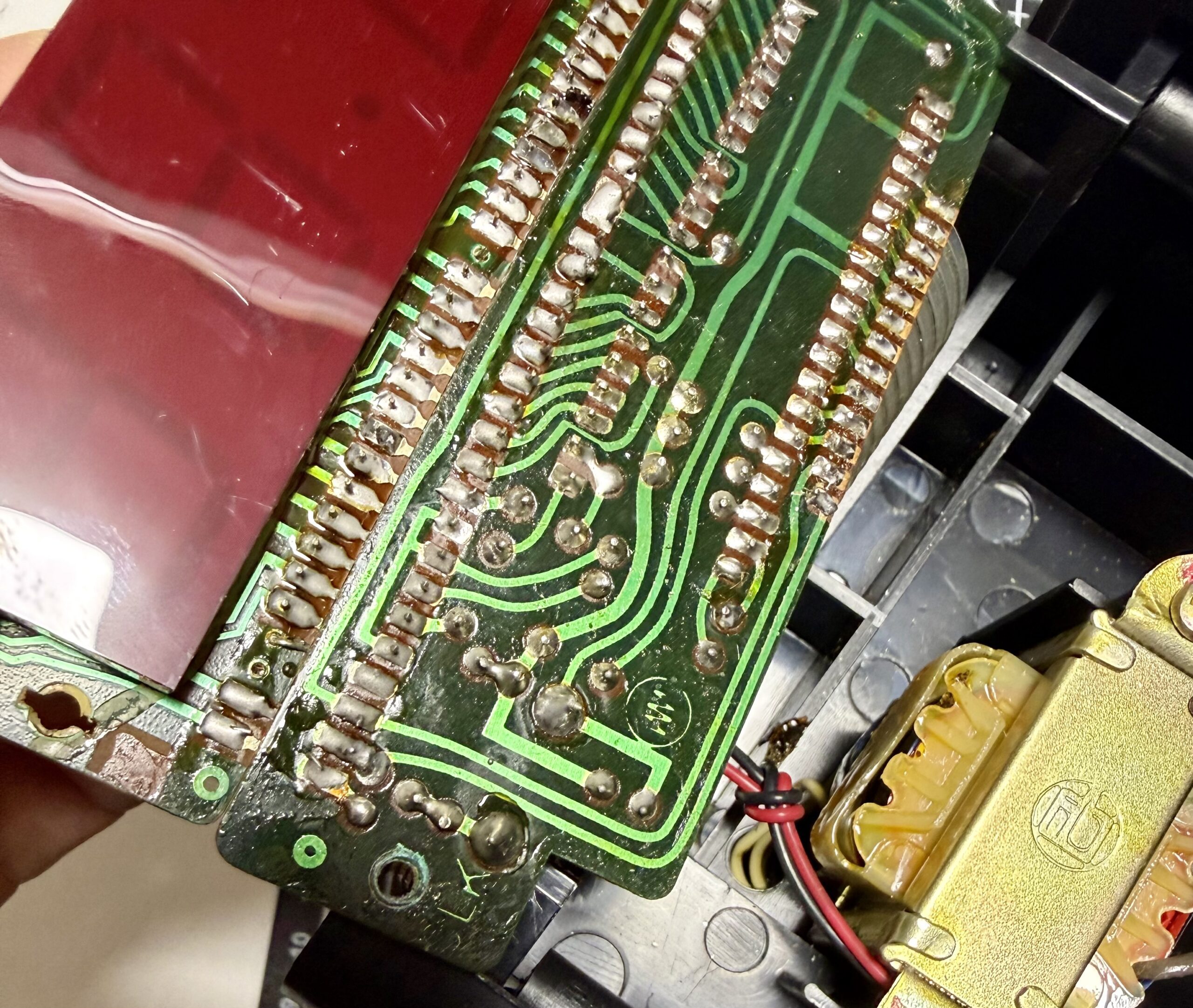 Der Displayfehler hatte seine Ursache in einer kalten Lötstelle bei der Verbindung zwischen IC und LCD-Modul. Der Fehler tritt bei dieser Art Uhren häufig auf.