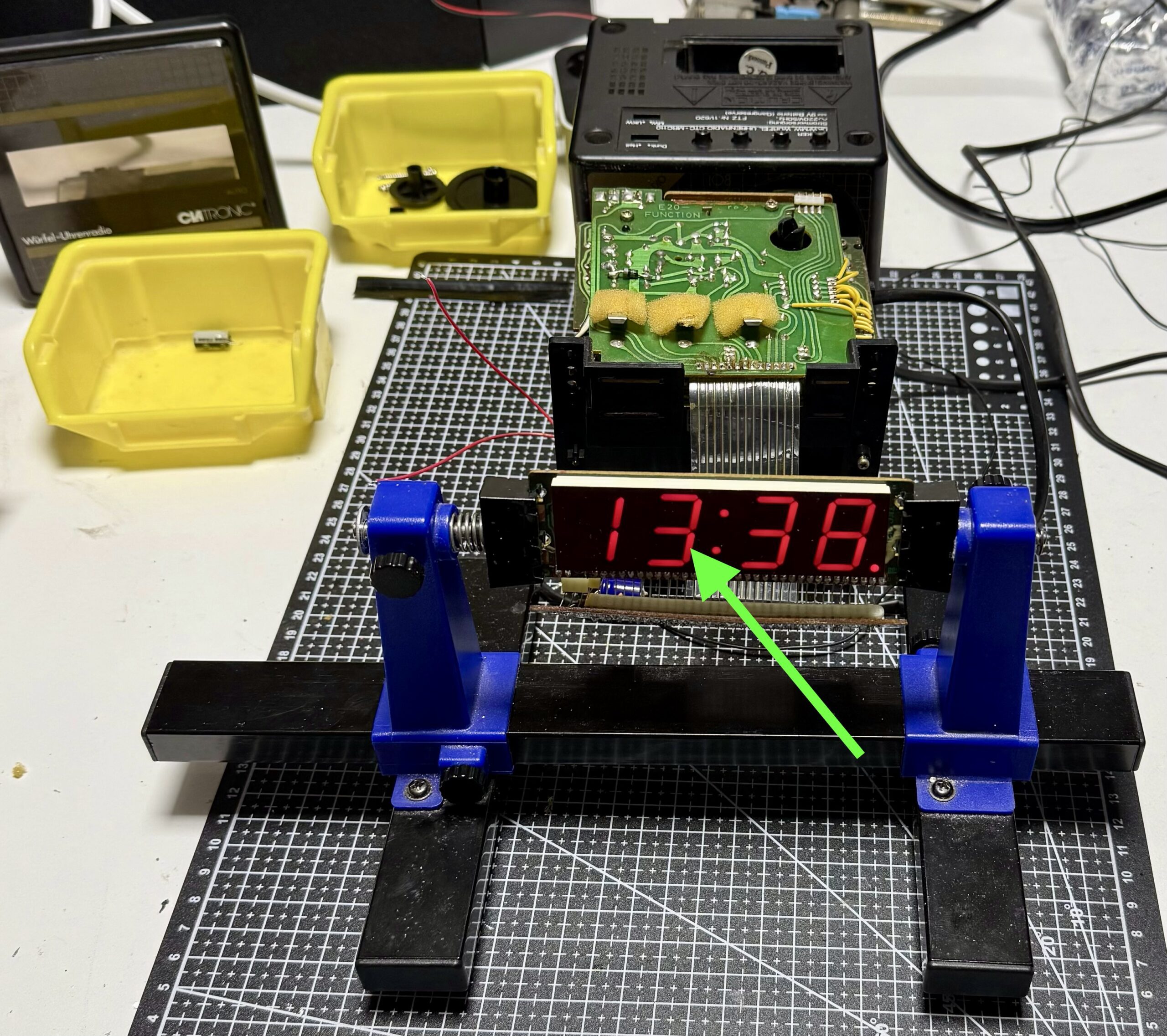 Ich habe nur einige wenige Bilder gemacht, damit ich weiß, wie ich es wieder montieren muss. Der Hauptfehler war ein ausgefallenes Segment der Uhrzeit-Anzeige.