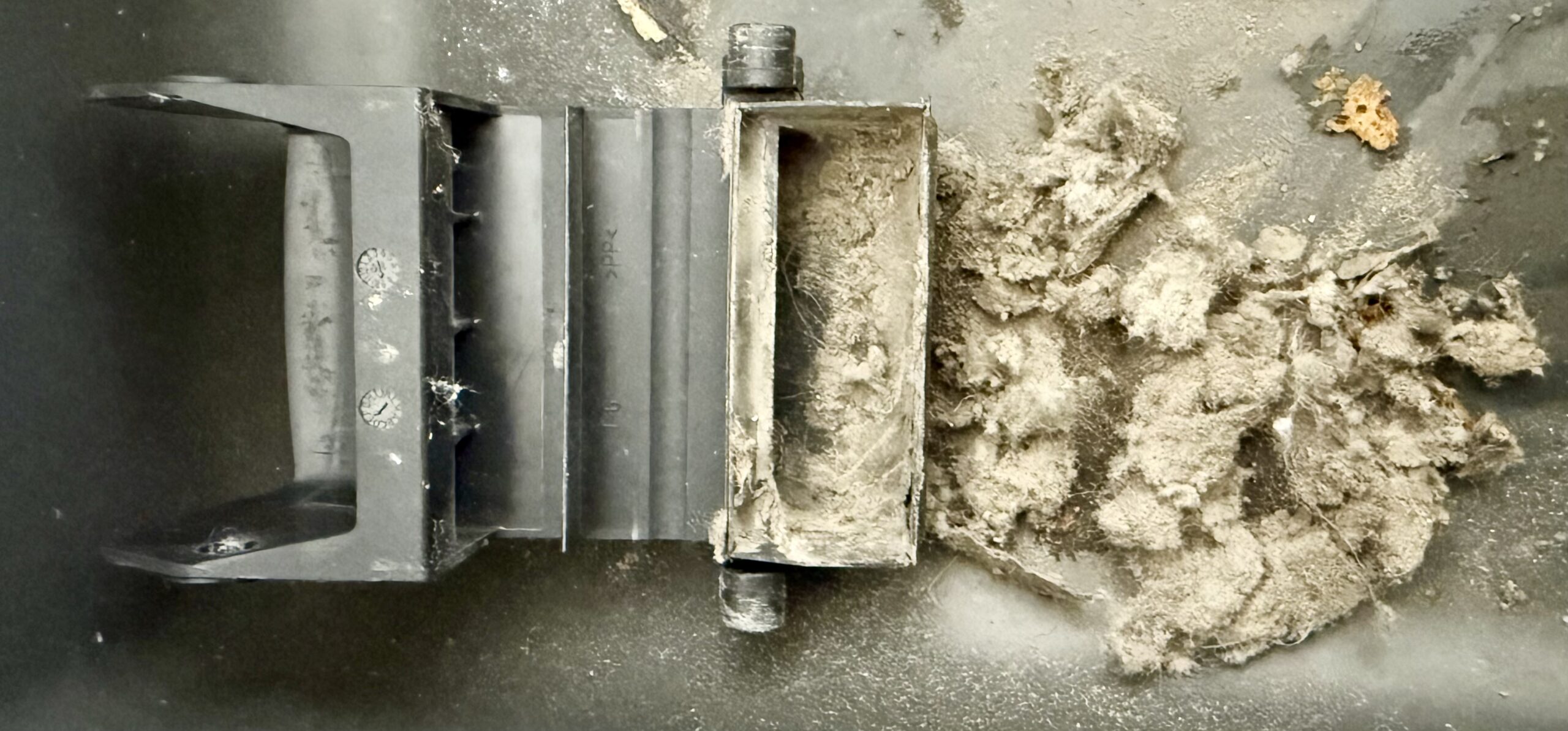 Erklärbar ist dieser festsitzende Schmutz nur damit, dass Feuchtigkeit mit eingesaugt wurde.