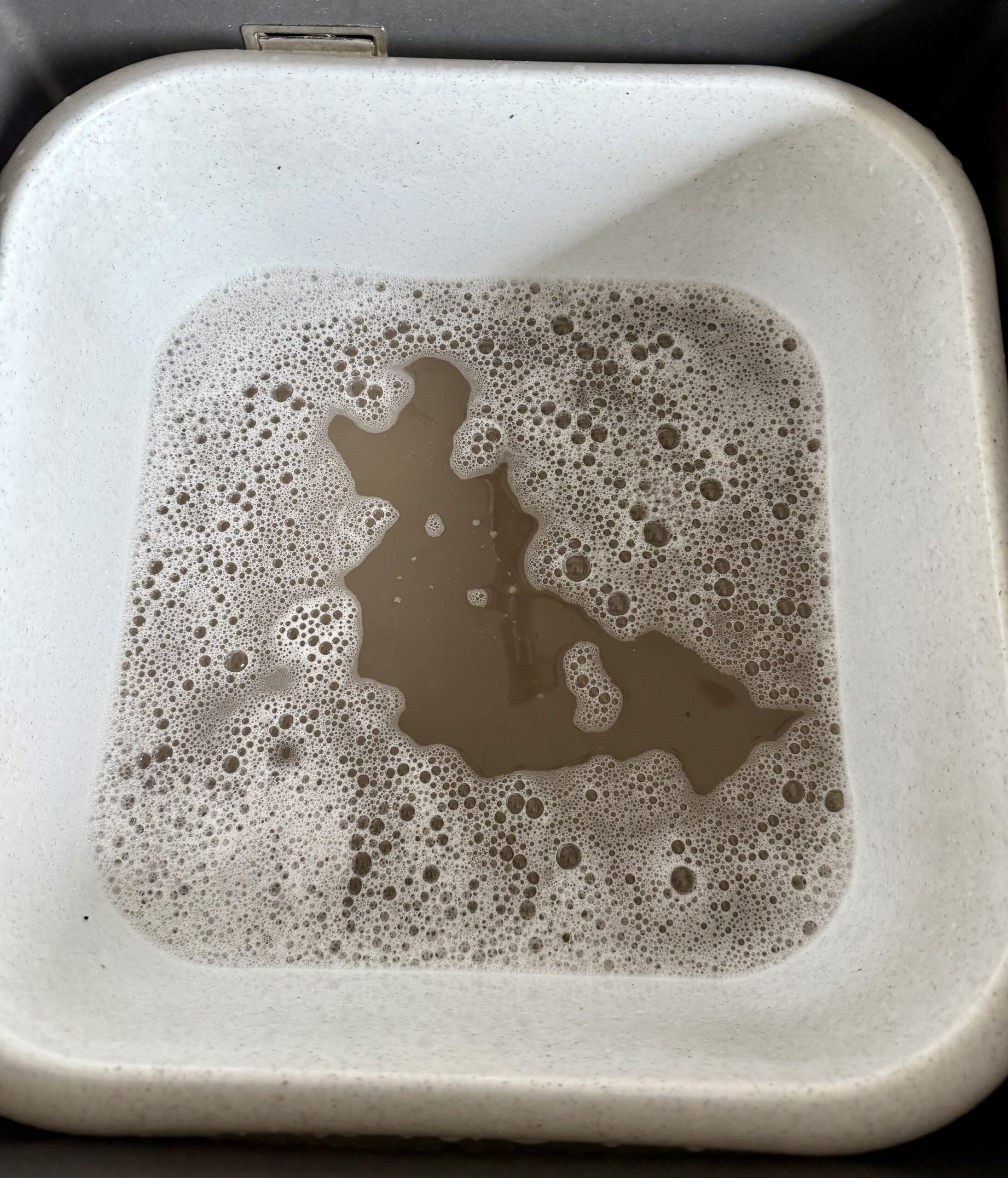 Danach offenbarte sich eine Krümelschlacht, der ich mit Pinsel und Staubsauger zu Laibe rückte. Alle Gehäuseteile bekamen ein Bad und glänzen nun wieder. Neben den Krümeln hat sich zusätzlich der übliche Küchendunst abgesetzt.