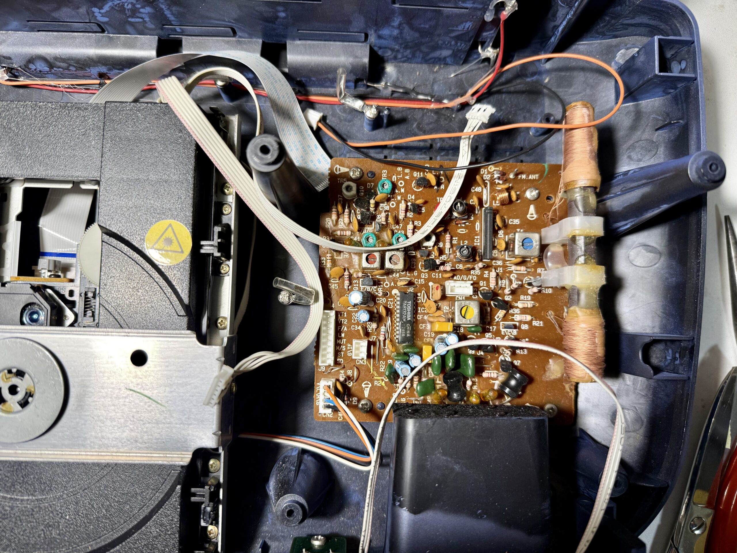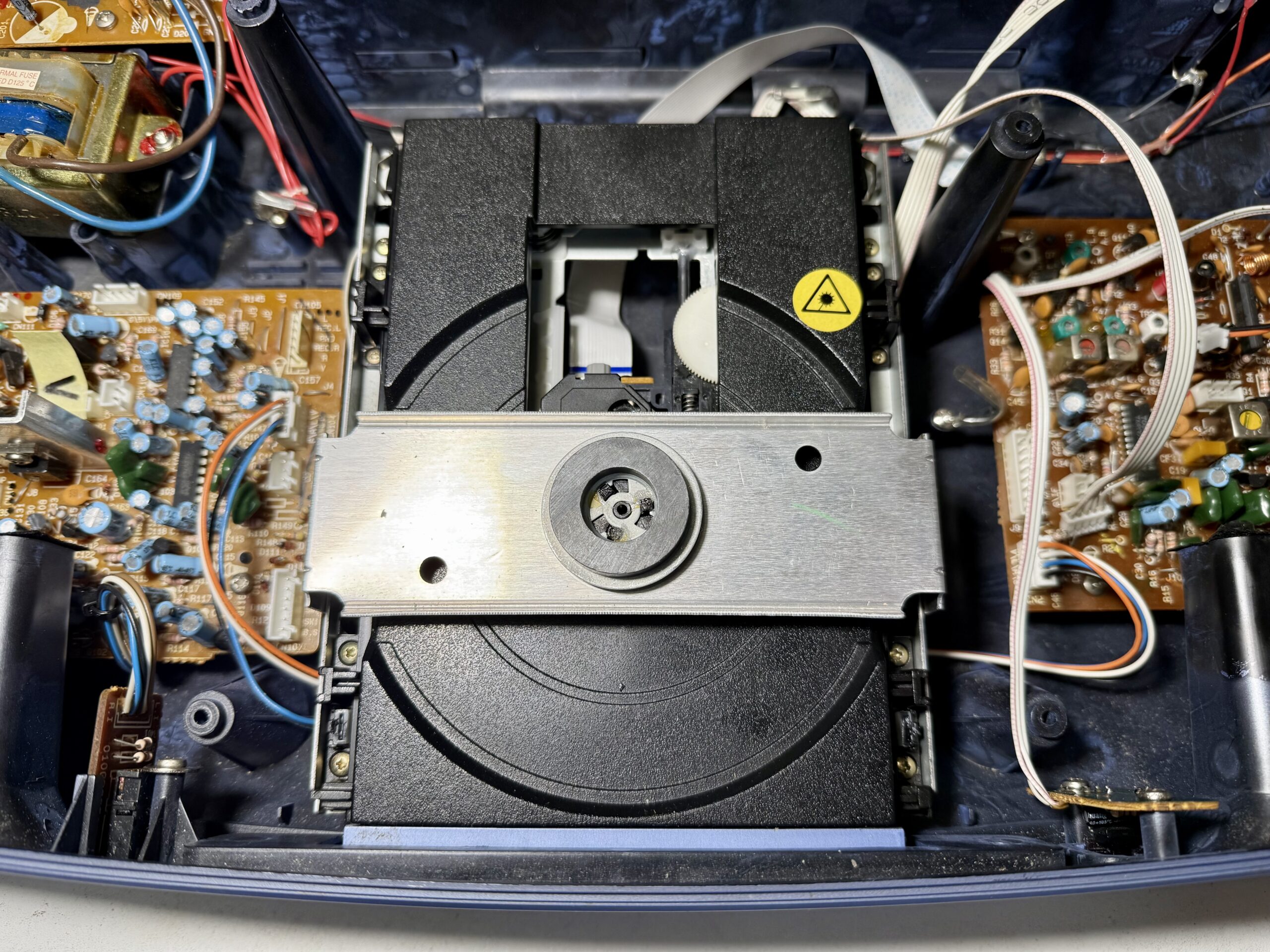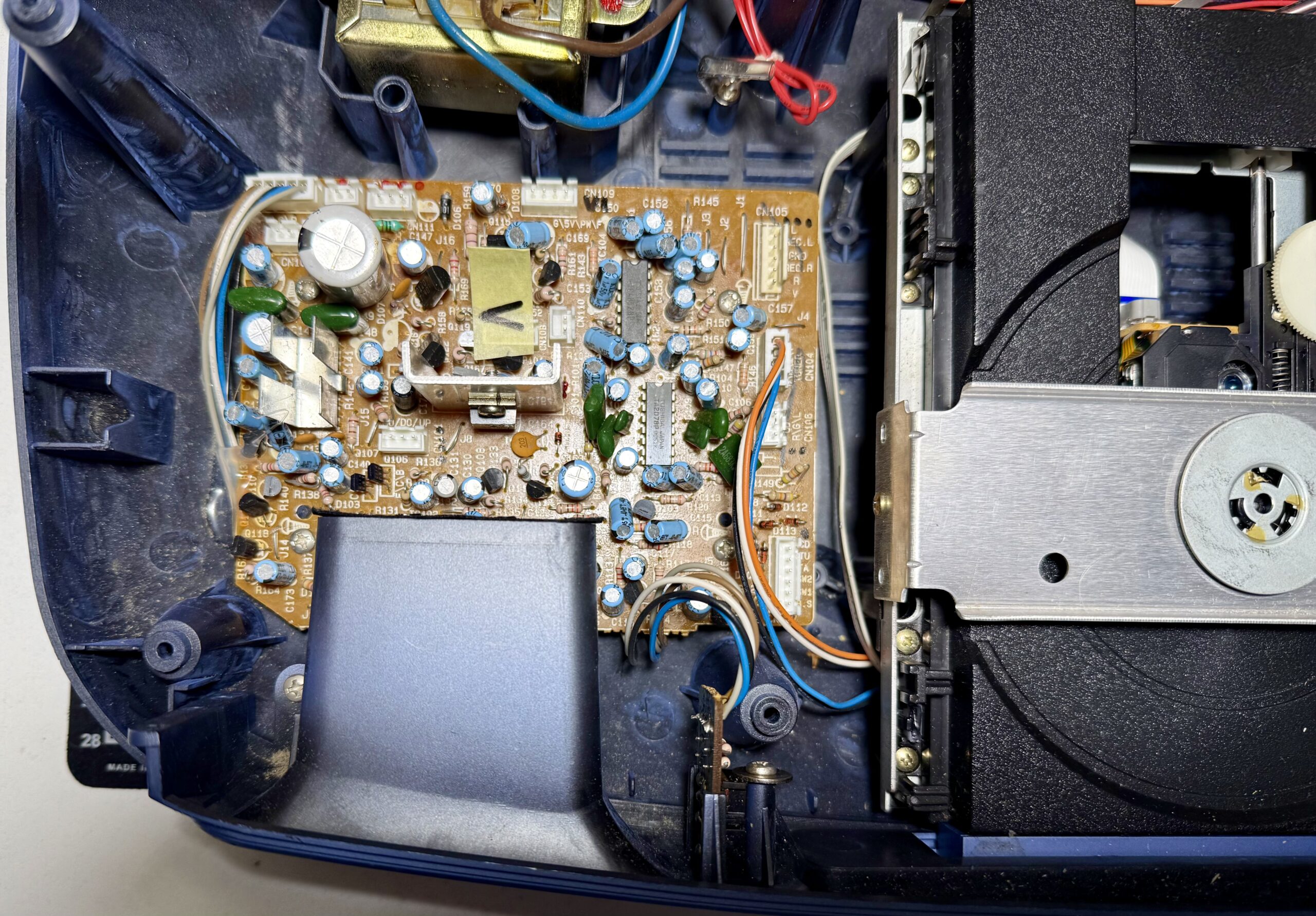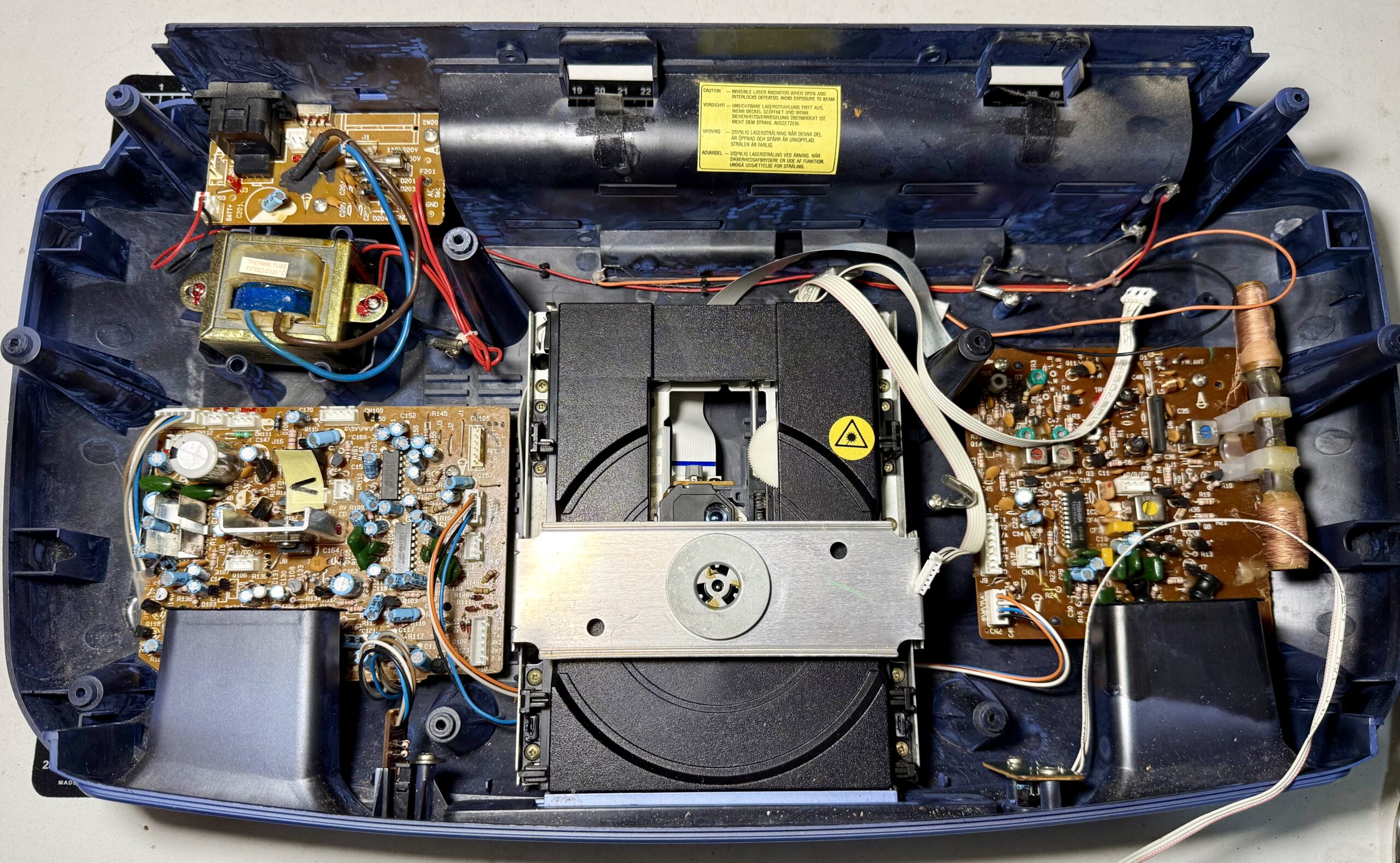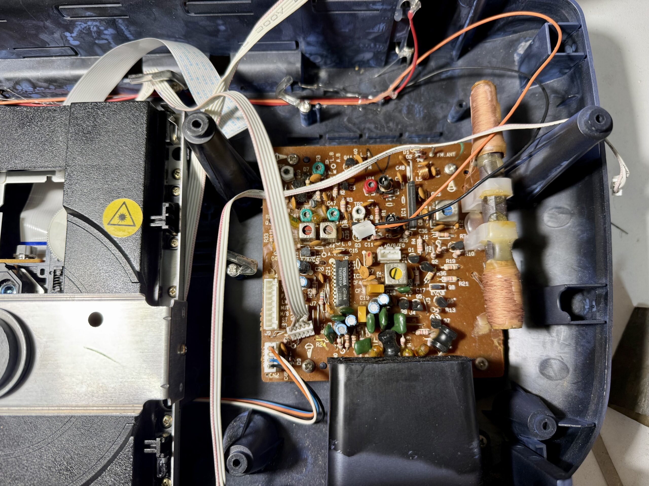Hier ein paar Impressionen aus dem Inneren des Gerätes (Anklicken zum Vergrößern). Ich musste übrigens das CD-Laufwerk komplett überholen, da hier ein vorheriger Reparateur sein Unwesen getrieben hatte.