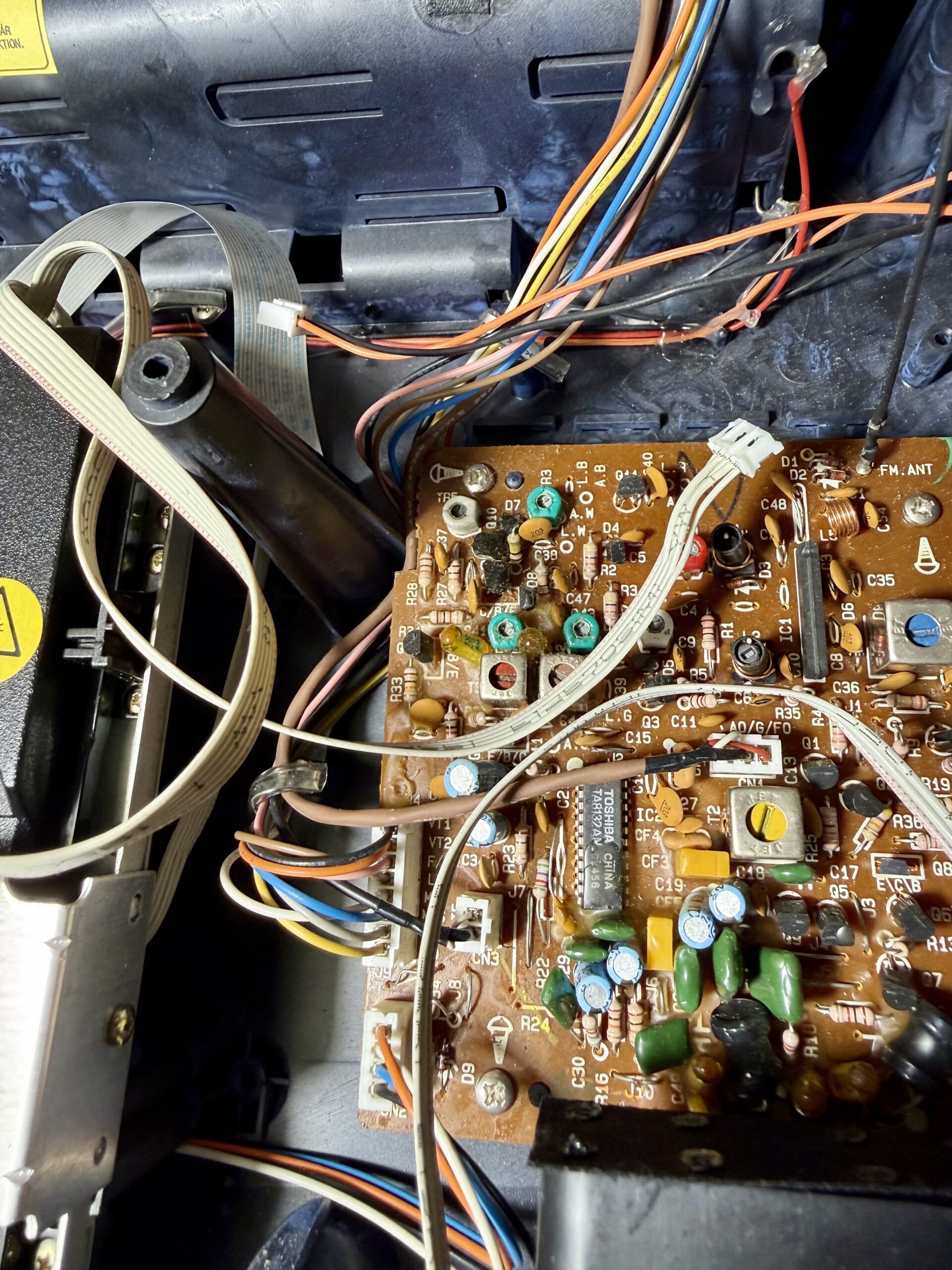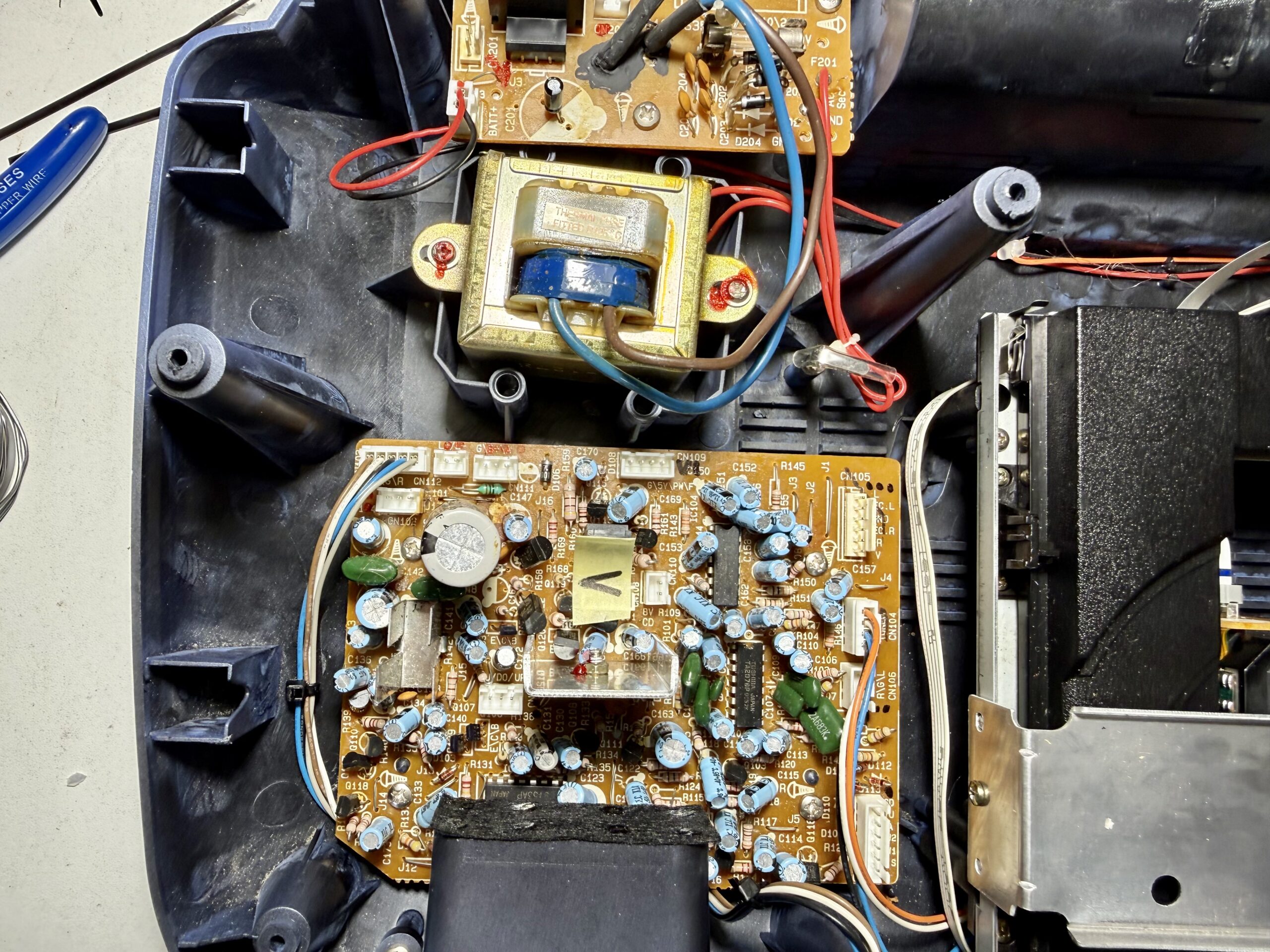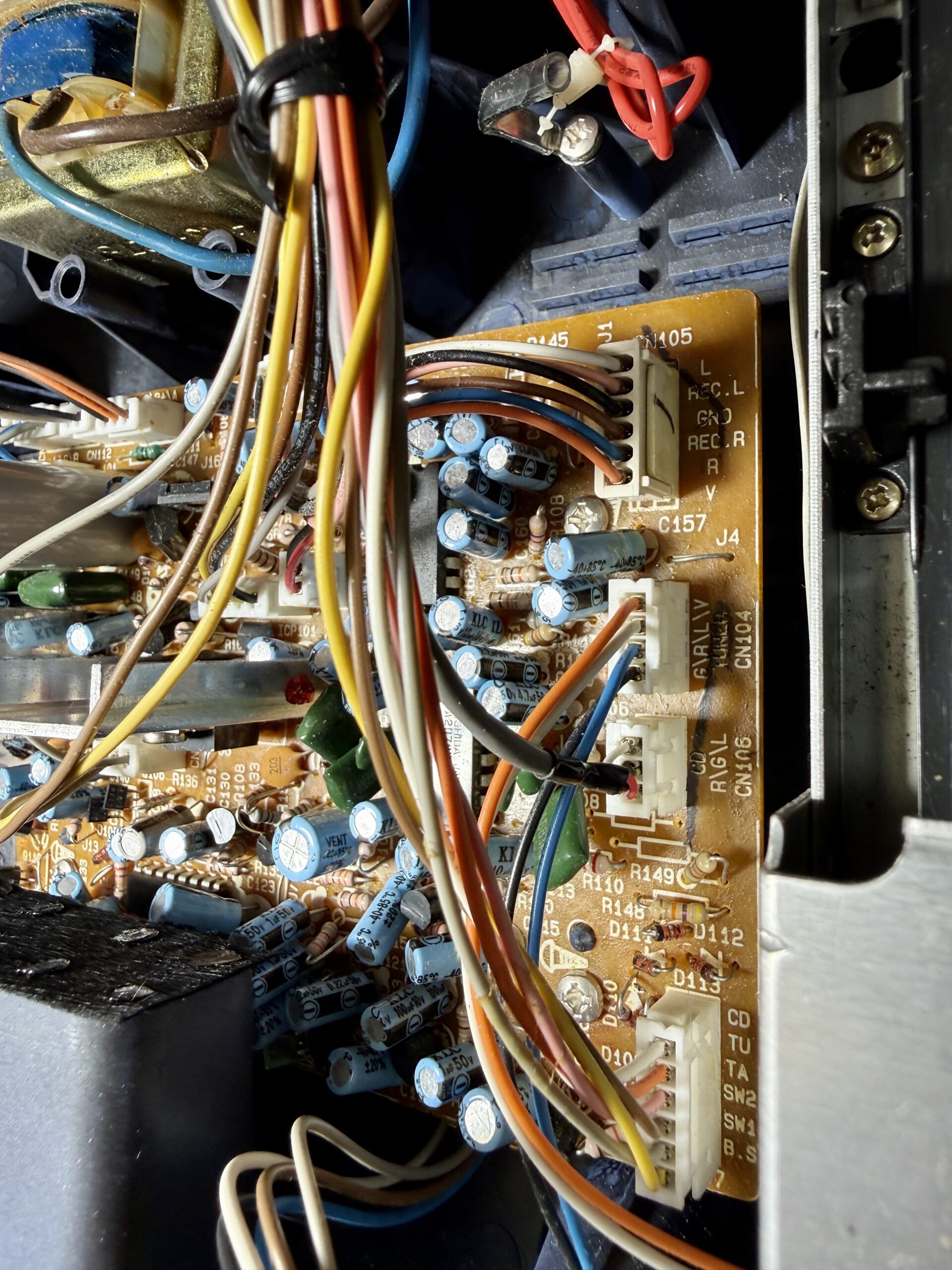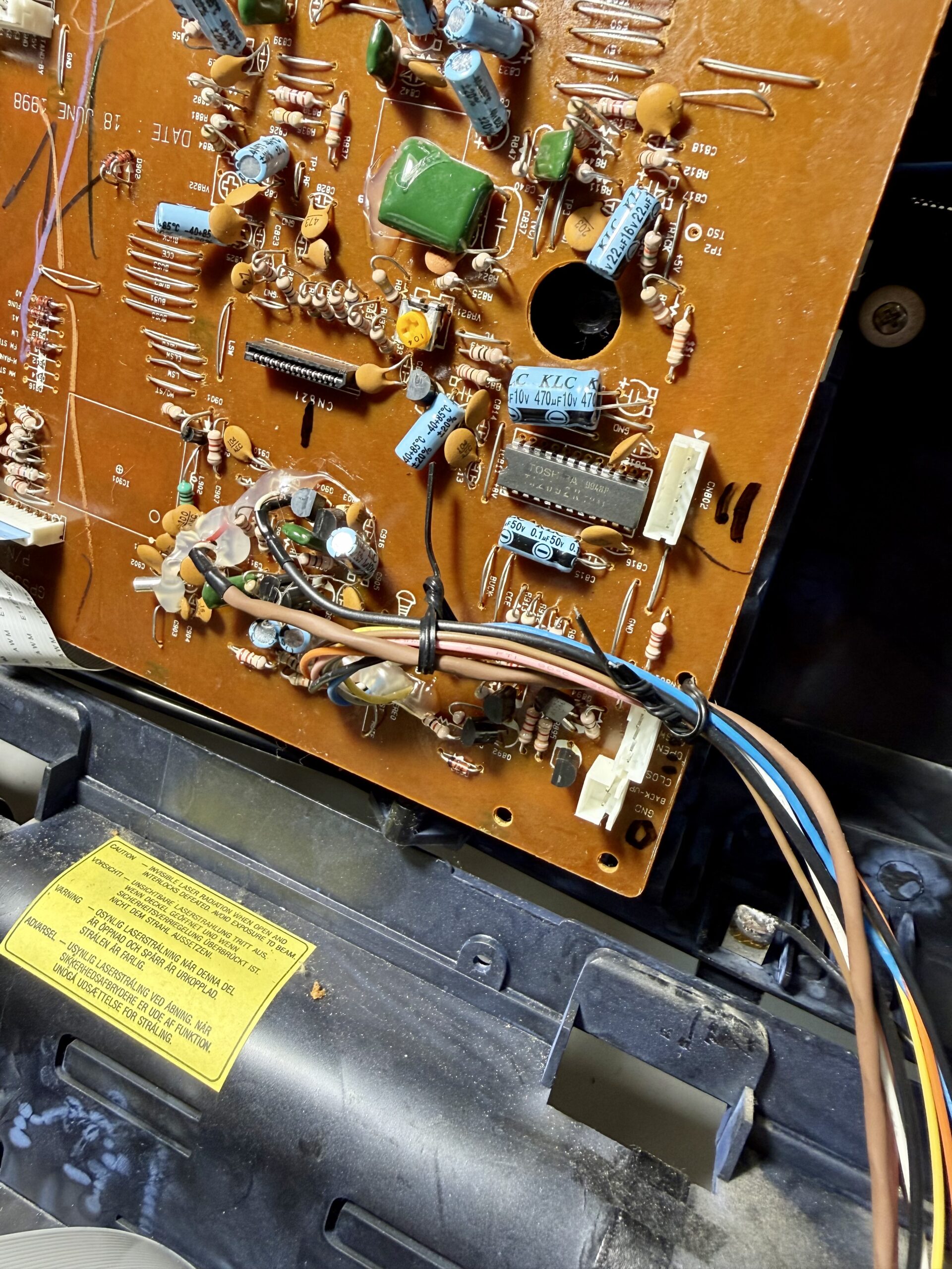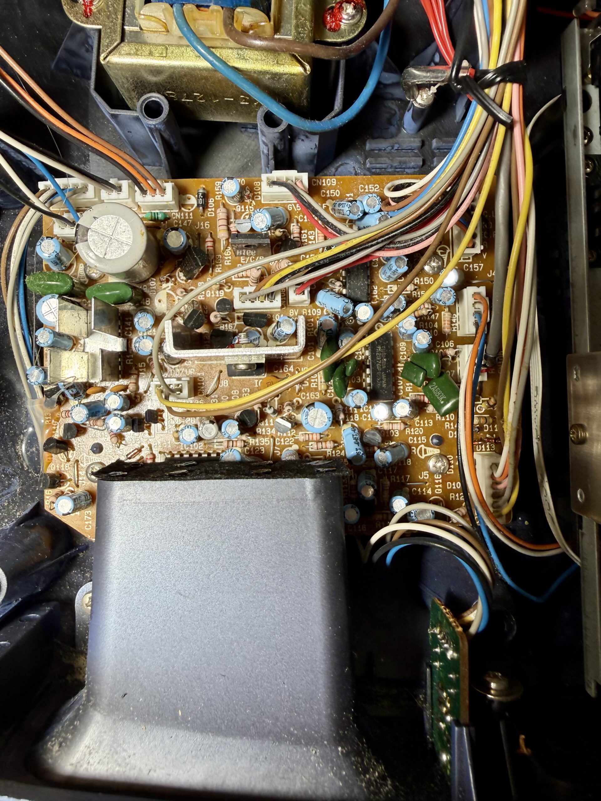 Hier ein paar Impressionen aus dem Inneren des Gerätes (Anklicken zum Vergrößern). Ich musste übrigens das CD-Laufwerk komplett überholen, da hier ein vorheriger Reparateur sein Unwesen getrieben hatte.