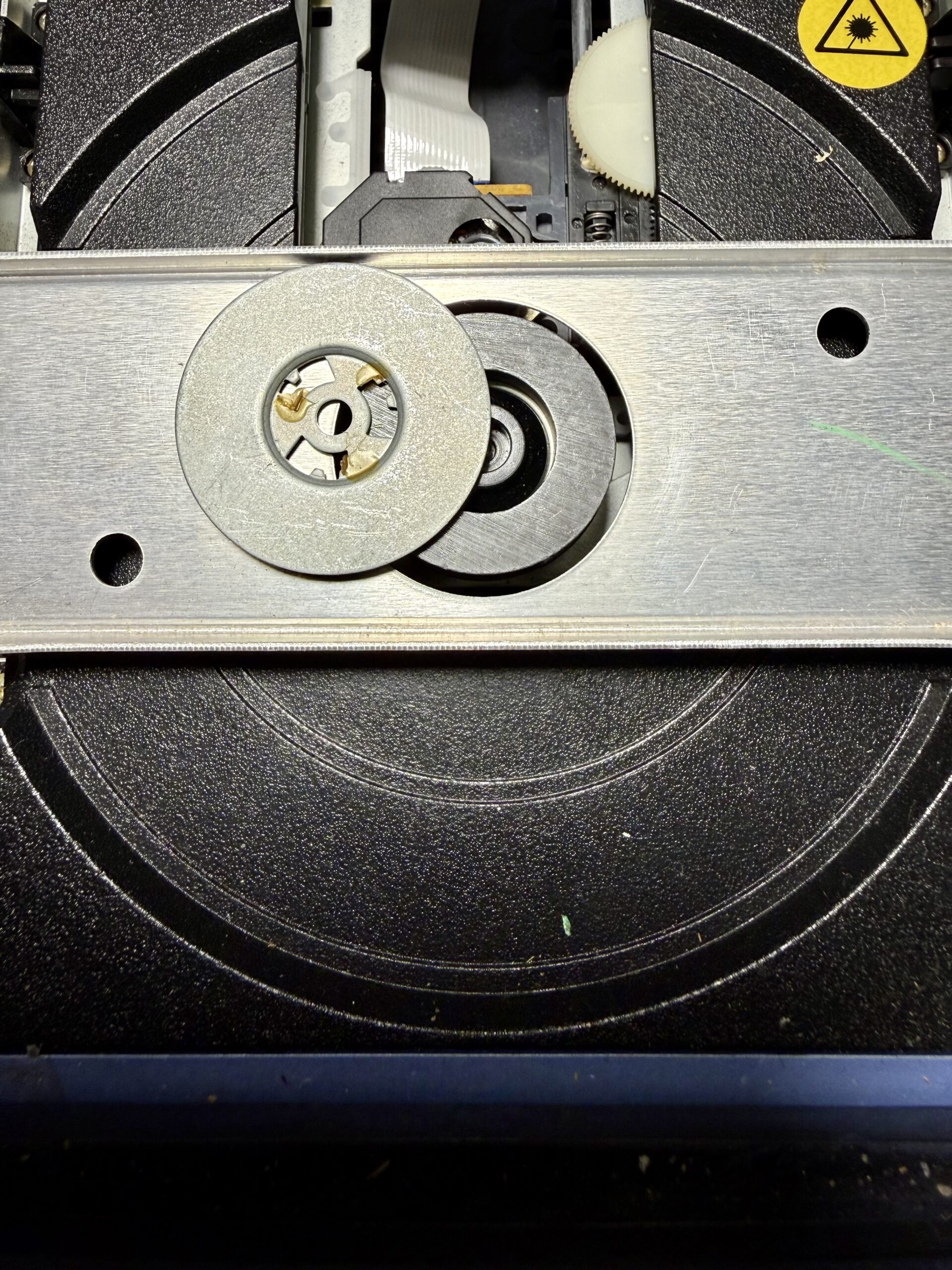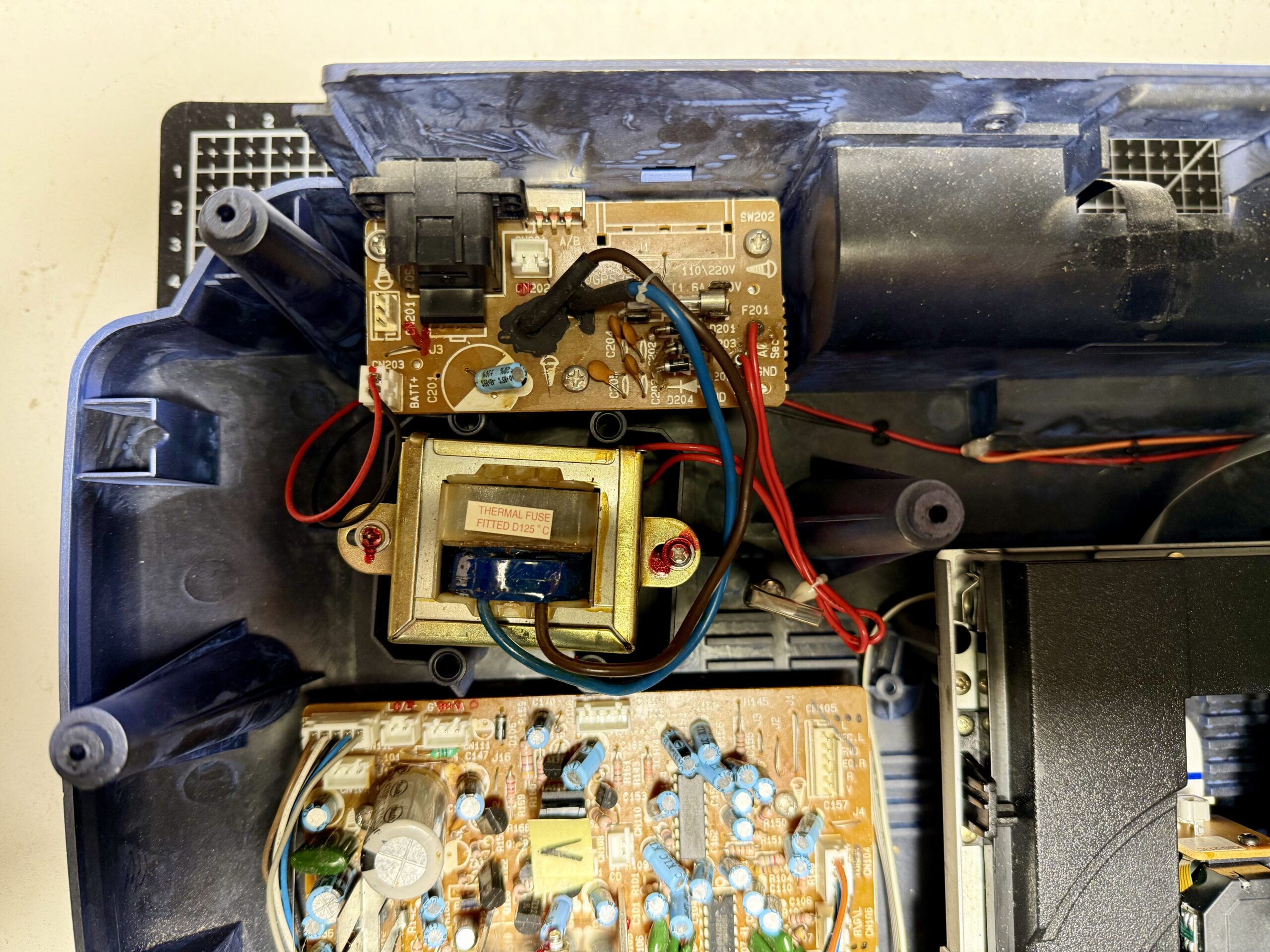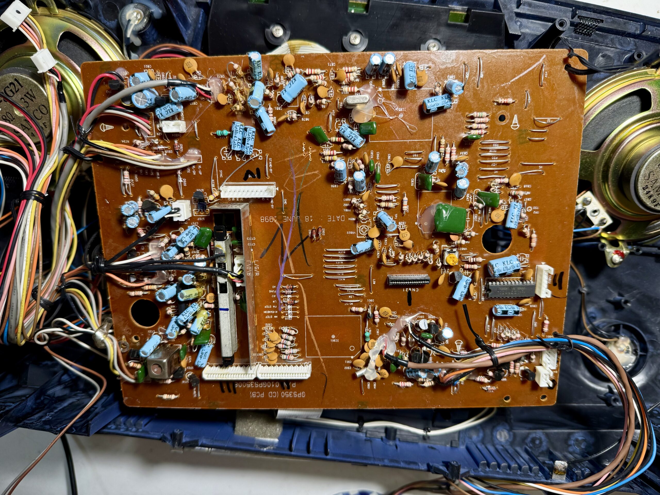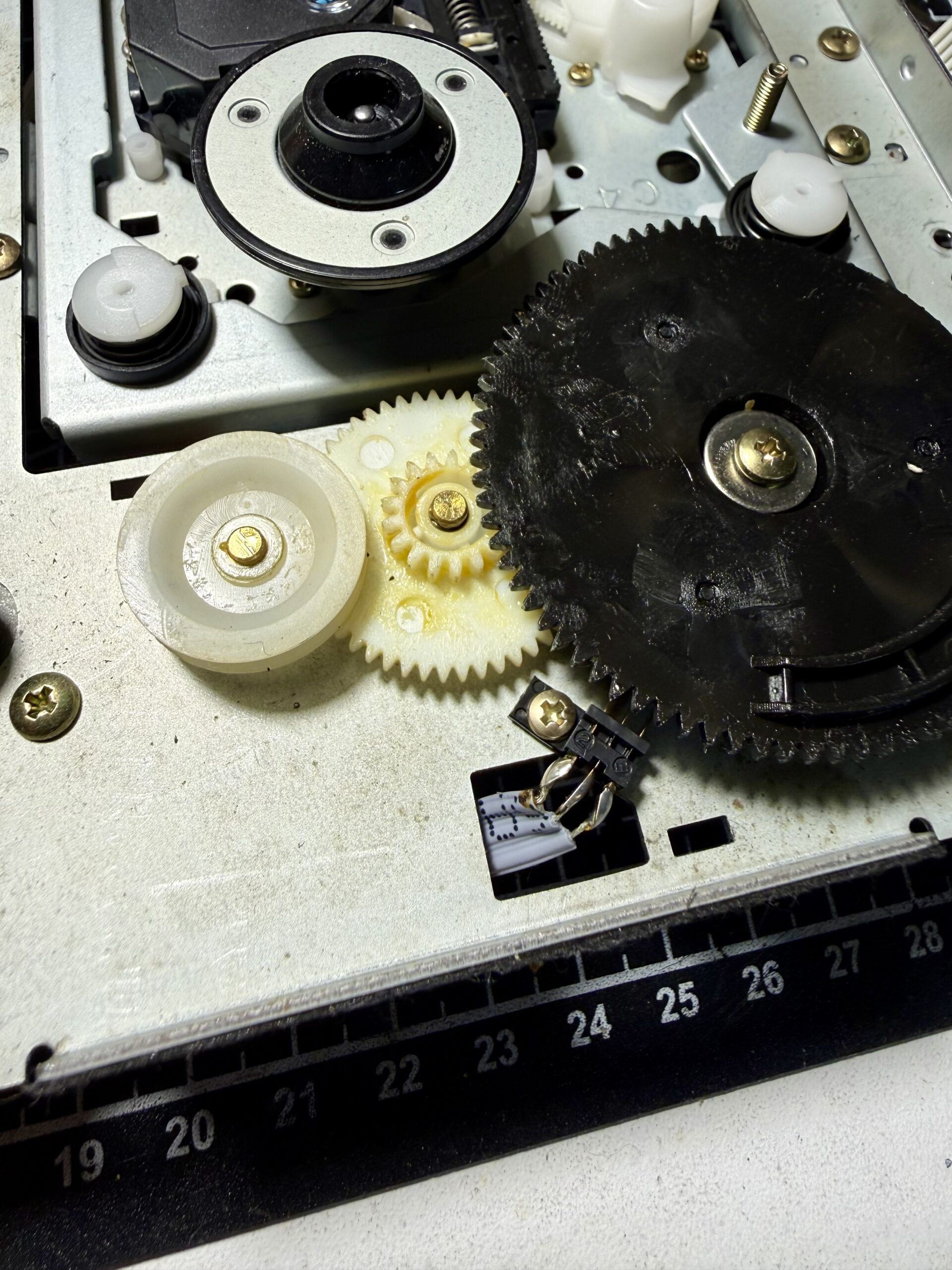 Hier ein paar Impressionen aus dem Inneren des Gerätes (Anklicken zum Vergrößern). Ich musste übrigens das CD-Laufwerk komplett überholen, da hier ein vorheriger Reparateur sein Unwesen getrieben hatte.