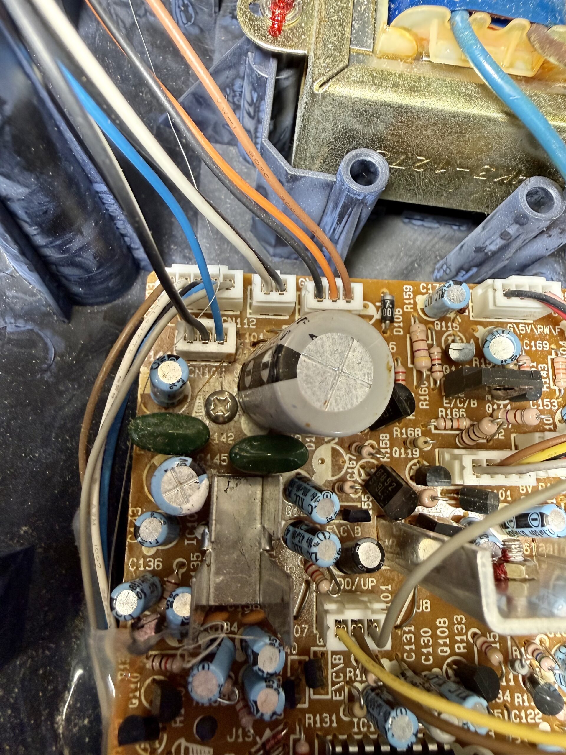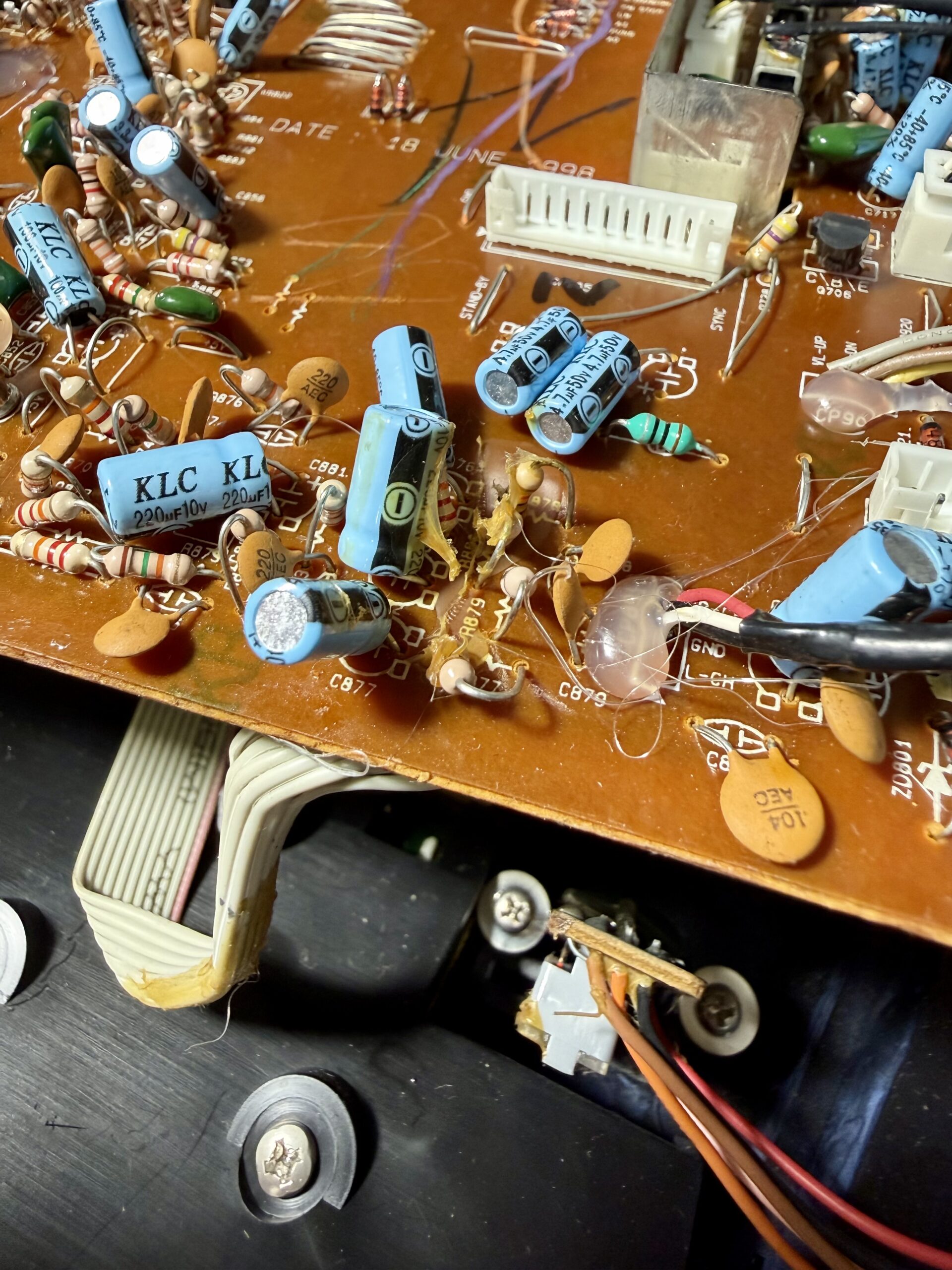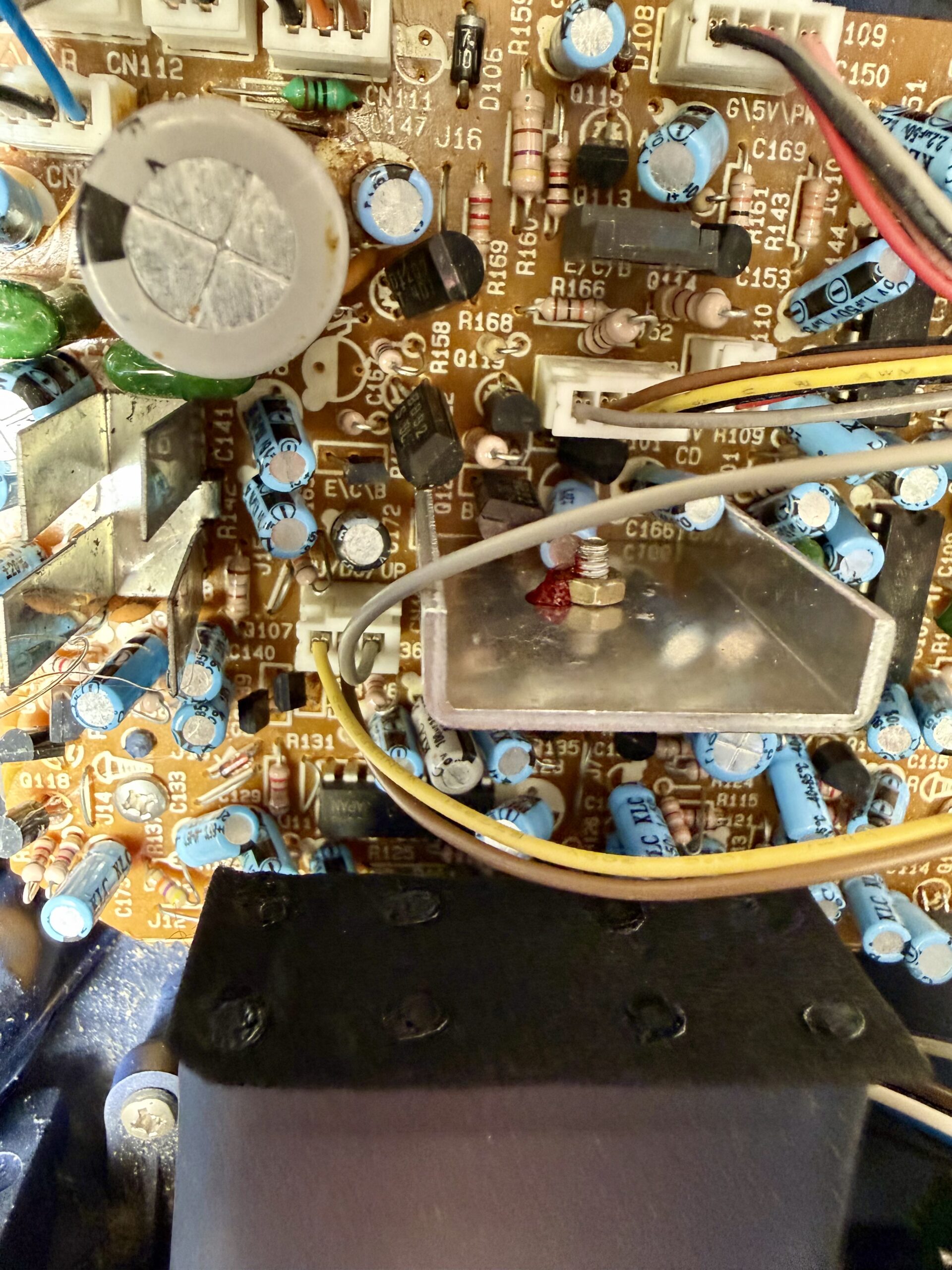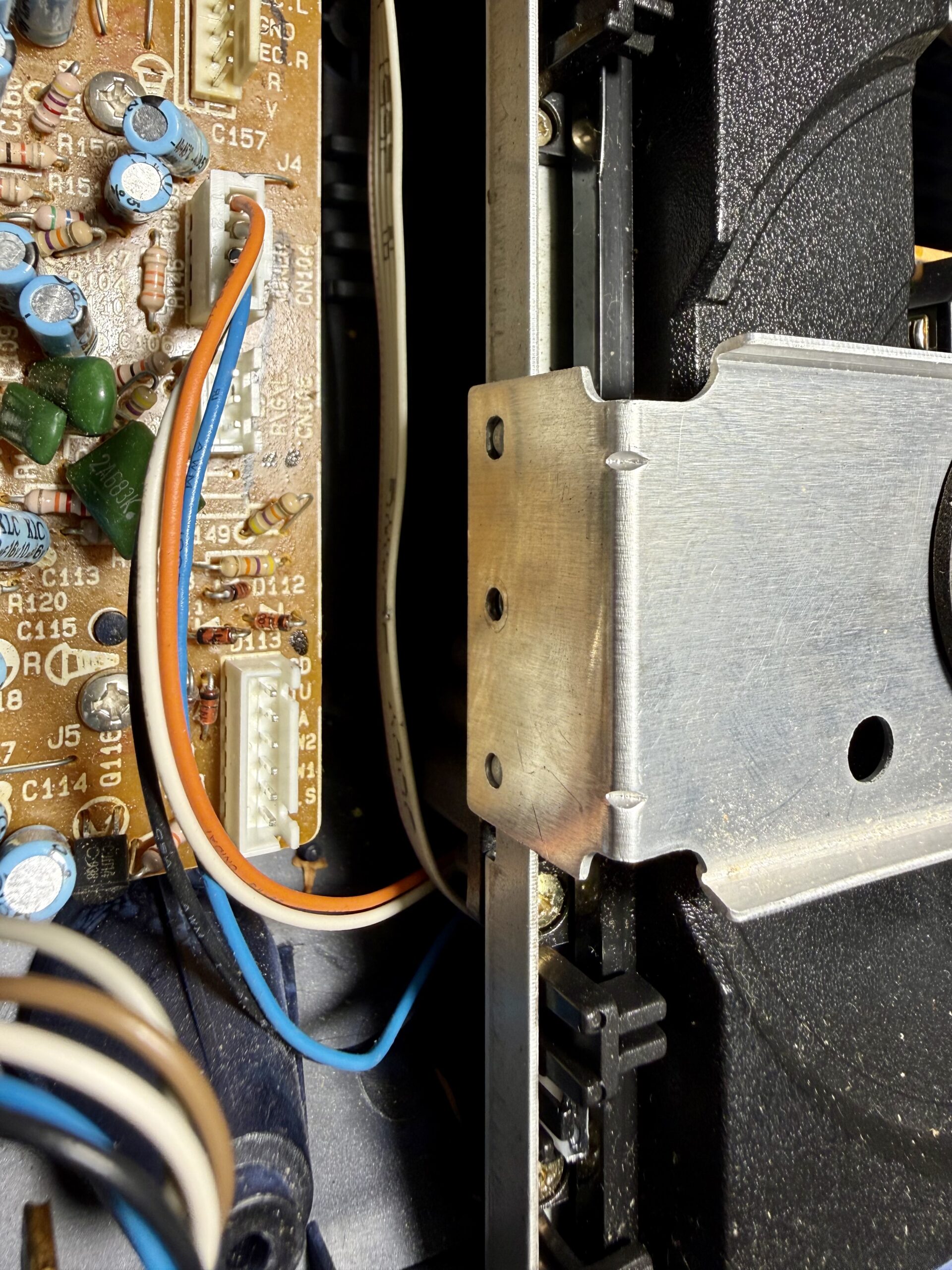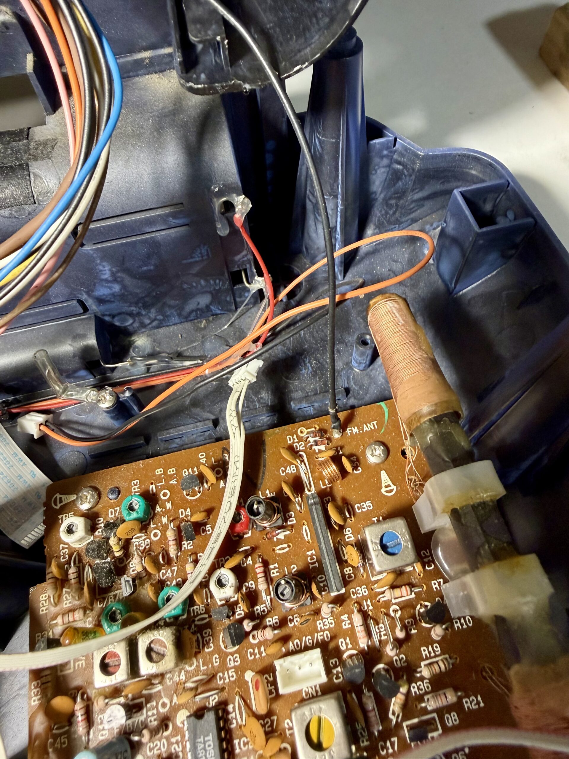 Hier ein paar Impressionen aus dem Inneren des Gerätes (Anklicken zum Vergrößern). Ich musste übrigens das CD-Laufwerk komplett überholen, da hier ein vorheriger Reparateur sein Unwesen getrieben hatte.