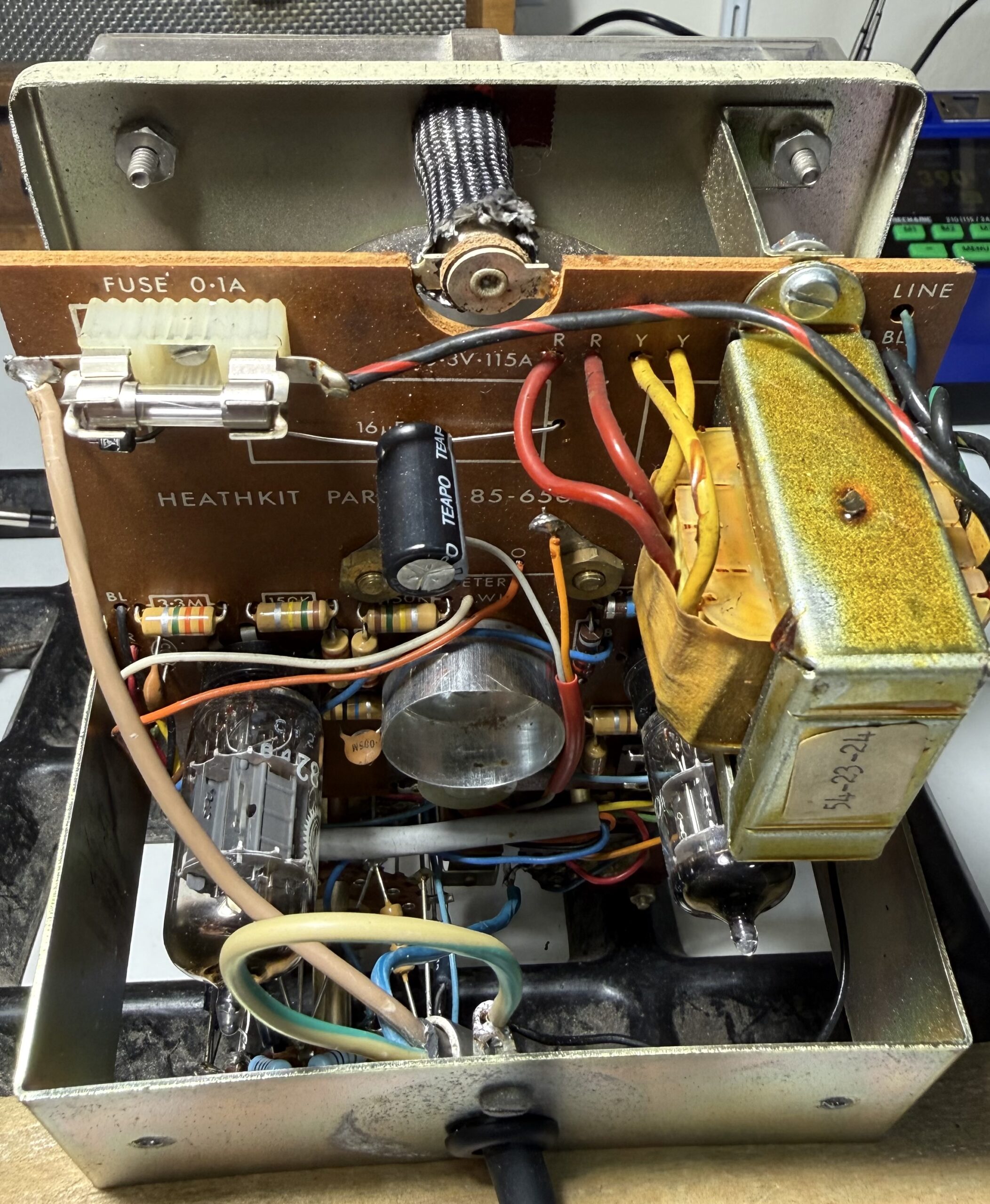 Das Heathkit Voltmeter war ein wenig verbastelt und in die Jahre gekommen. Das teilweise angerostete Gehäuse habe ich so belassen, die Funktion ist davon nicht beeinträchtigt.