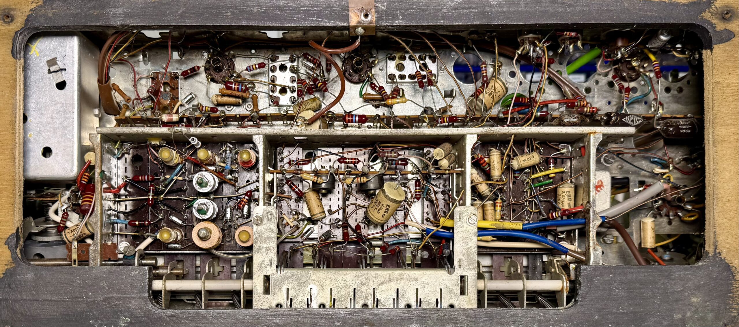 Gehäuse und Chassis sind gut erhalten. An der Unterseite gibt es ein paar Roststellen.