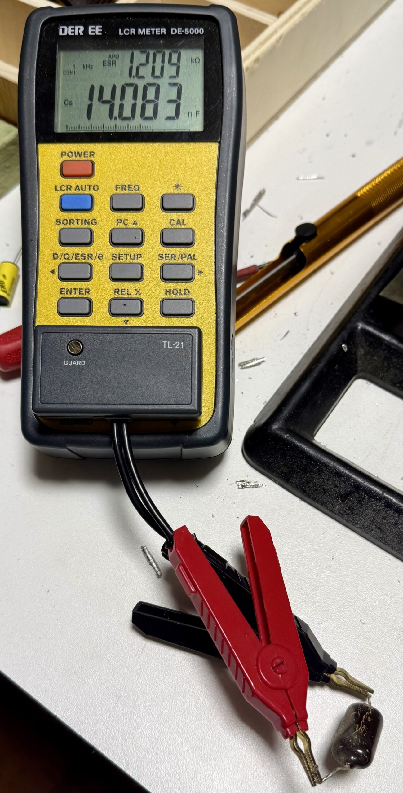 Soll 10 nF, Ist 14 nF – 40 % aus der Norm und ein viel zu hoher ESR sind unter Umständen tödlich für den Netztrafo.