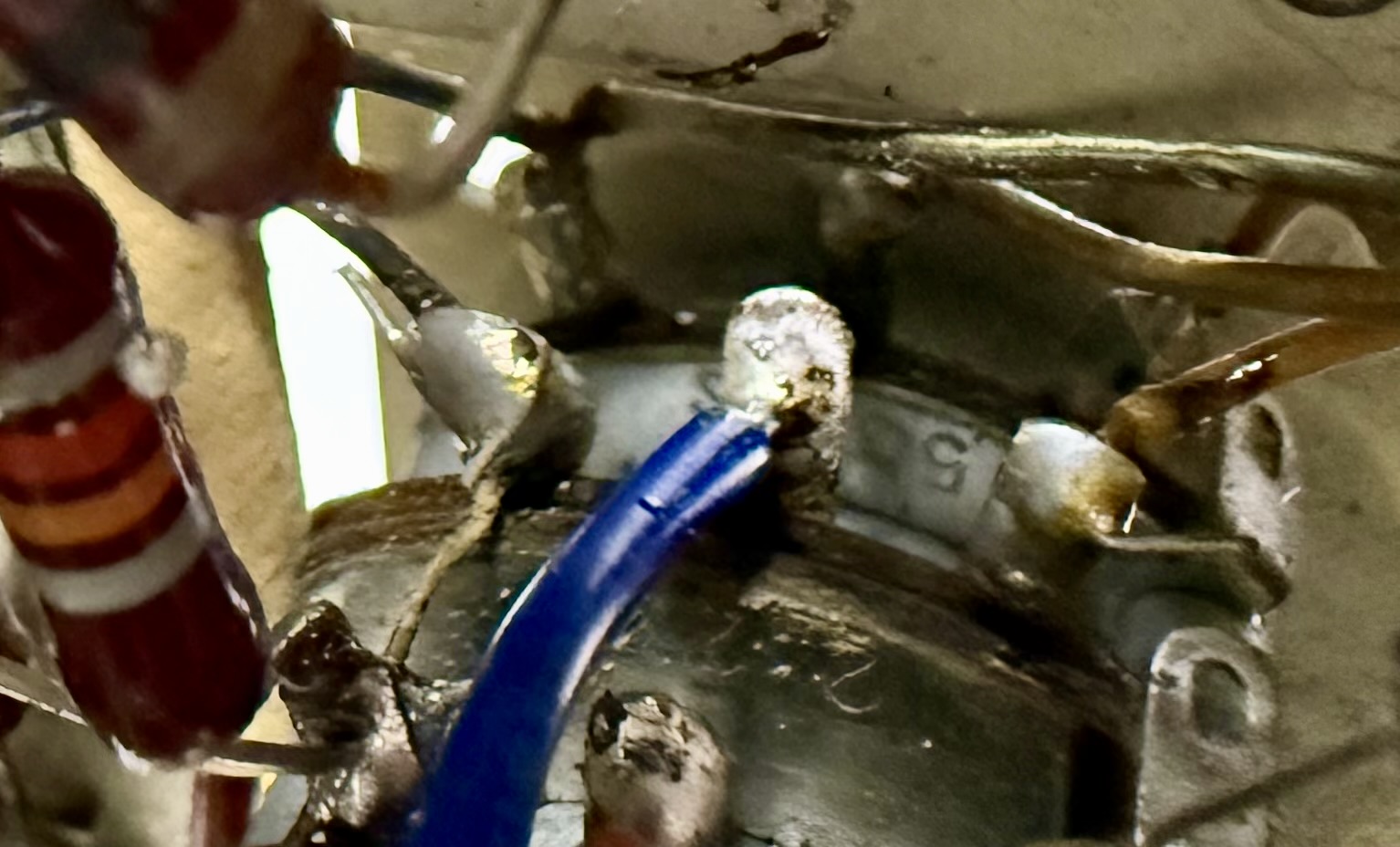 Die festgebackene Hülse könnt eich schlussendlich mittels Heißluft – ich habe einen SMD-Heißluftlötkolben – freibekommen. Eine gründliche Reinigung aller Bauteile mit IPA später konnte ich alles wieder zusammensetzen. Die fehlenden Vernietungen habe ich mittels Drähten ersetzt, die ich verdrillt und danach verlötet habe.