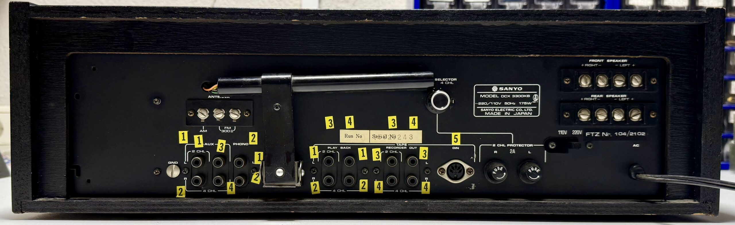 Der Sanyo DCX 3300KB ist ein 4-Kanal-Stereo-Receiver aus den Jahren 1974 bis 1977, der damals stolze 1400 DM gekostet hat.