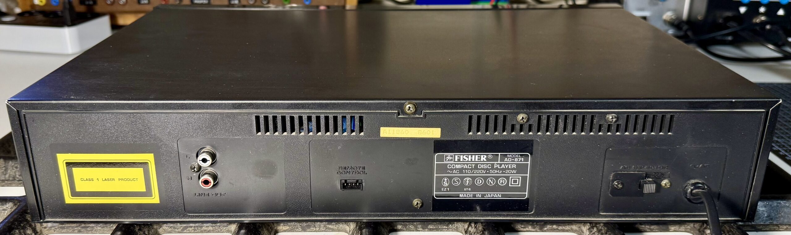 Der Fisher Studio Standard AD-871 CD-Player ist ein Gerät aus den 80er Jahren. Es dürfte sich um ein Gerät aus der unteren Preisklasse handeln, konkrete Zahlen zum Neupreis habe ich nicht gefunden.