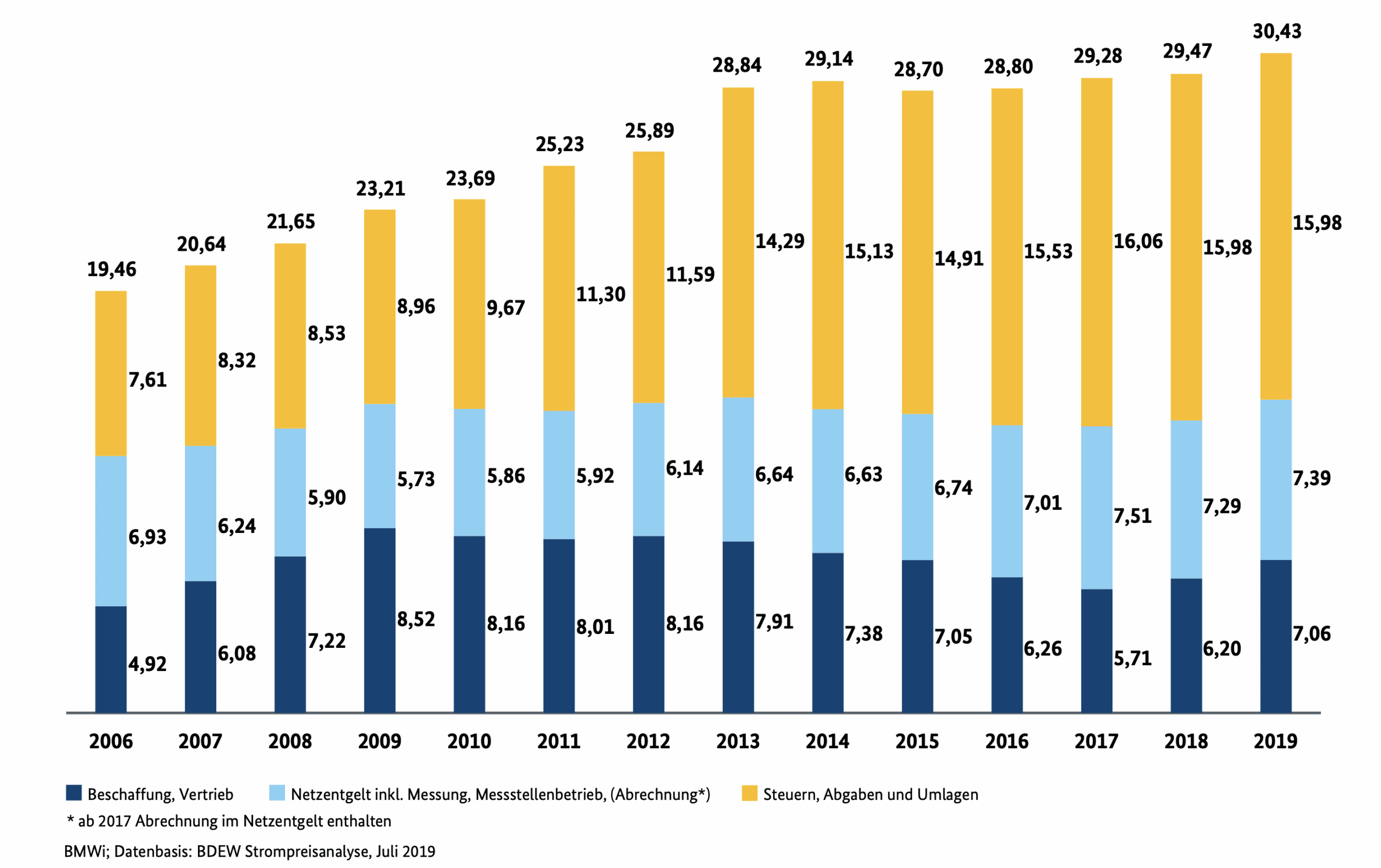 Zur Berechnung aller Kosten benötige ich die Kosten für elektrische Energie seit 2014. Das Bundeswirtschaftsministerium liefert folgend Zahlen: